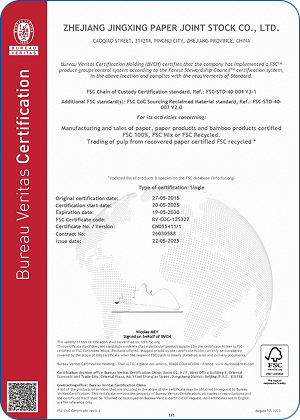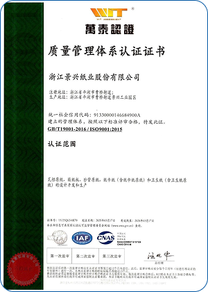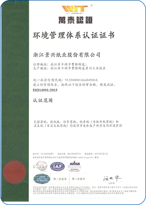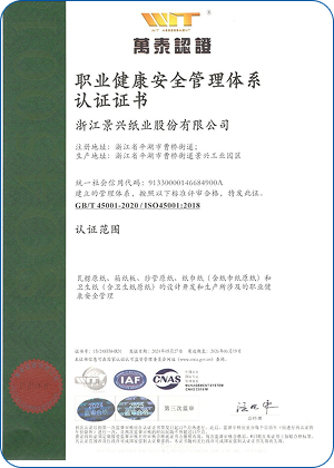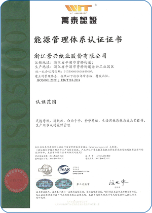 Jingxing Paper took the lead in the same industry to pass the ISO9001 quality management system and ISO14001 environmental management system certification, in 2014 passed the OHSAS18001 occupational health and safety management system certification, in 2015 passed GB / T23331 energy management system and FSC® forest system certification, passed in 2018 Certification of integration management of two industries.