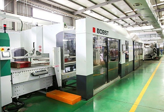 The company has an advanced corrugated cardboard production line imported from Germany and a five-color flexo-printing box linkage line imported from France, so that the production automation control is comprehensively and effectively improved. The German BHS Star of Excellence five-layer corrugated cardboard production line is designed with a maximum speed of 300 meters per minute and an annual production capacity of 100 million square meters. This assembly line adopts the most advanced international production technology, which is highly intelligent. It is equipped with QDM, which can memorize and retrieve the production data of the order to ensure stable operation. At the same time, the corrugated roller adopts the chuck installation and peripheral heating method, and the corrugated roller can be replaced the fastest 15 minutes, greatly improving the corrugation efficiency. French BOBST (Boost) FFG 8.20 automatic carton linkage line, the production speed can reach 24,000 cartons / hour, only 3 people can easily operate the machine, is the first domestic carton linkage production line of this model. The entire line has a fast setting function, which can complete the order change in only 1-2 minutes. It can slot the box with ultra-efficient production rules. It has a SOC function (the order is automatically in place after the previous order is completed), five-color printing, and automatic printing error correction. Features.